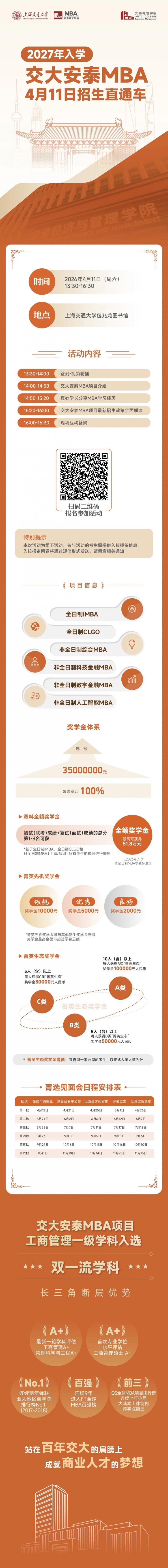 活動(dòng)預(yù)告 | 4月11日交大安泰MBA招生直通車分享不停歇,春日更多重磅活動(dòng)開放預(yù)約中!