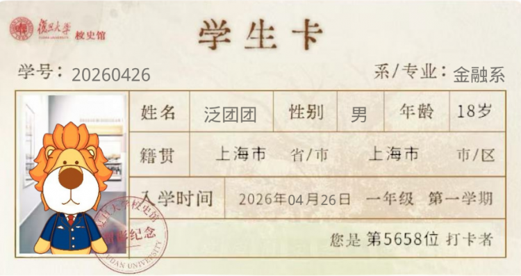 校園參訪:復旦老師親自帶隊講解,帶你走進百年校史,還可獲得泛團團同款“復旦學生證”(紀念版)。