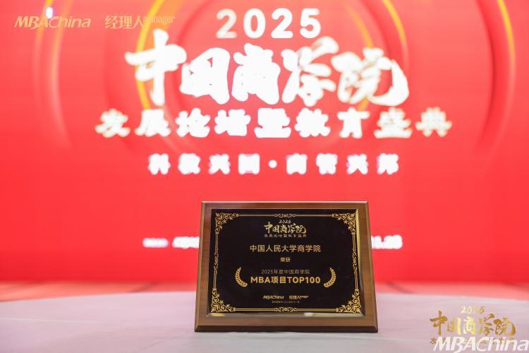 喜報!中國人民大學(xué)商學(xué)院榮獲“2025年度中國商學(xué)院MBA項目TOP100”第6名