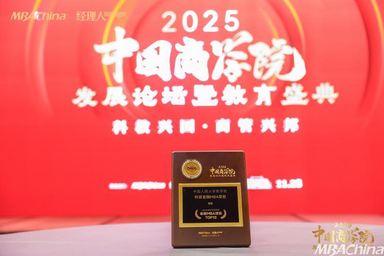 喜報!中國人民大學(xué)商學(xué)院科技金融MBA項目榮獲2025年度中國商學(xué)院金融MBA項目TOP10第四名