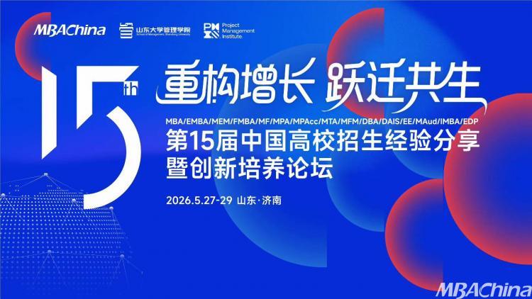 惠風(fēng)和暢,相聚齊魯。由MBAChina與山東大學(xué)管理學(xué)院聯(lián)合主辦的“重構(gòu)增長(zhǎng) 躍遷共生|第15屆中國(guó)高校招生經(jīng)驗(yàn)分享暨創(chuàng)新培養(yǎng)論壇”,將于2026年5月27日–29日在山東大學(xué)舉辦。作為中國(guó)商科教育領(lǐng)域持續(xù)舉辦十五載的標(biāo)桿性行業(yè)論壇,本論壇始終聚焦招生體系與人才培養(yǎng)核心議題,已逐步發(fā)展為匯聚行業(yè)共識(shí)、推動(dòng)實(shí)踐創(chuàng)新的重要交流平臺(tái)。論壇將邀請(qǐng)全國(guó)高校領(lǐng)導(dǎo)、院長(zhǎng)、項(xiàng)目負(fù)責(zé)人及行業(yè)專家學(xué)者,圍繞發(fā)展趨勢(shì)與路徑優(yōu)化展開(kāi)深入研討,系統(tǒng)回應(yīng)“招生增長(zhǎng)與人才培養(yǎng)”的時(shí)代命題。在此,誠(chéng)摯邀請(qǐng)貴單位撥冗出席,共同參與年度論壇交流。